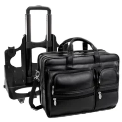 McKlein Clinton Leather Patented Detachable Wheeled Laptop Bag – Black