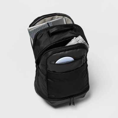 Everyday necessities and travel items can be stowed in one place with this black backpack. A number of exterior and interior zip pockets help separate and organize your items, while the main zippered compartment is perfect for larger belongings. A laptop pocket is suitable for your electronics, and you can find the right fit for comfortable carrying with the help of adjustable straps and a loop handle.