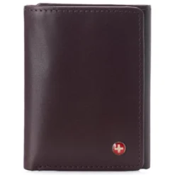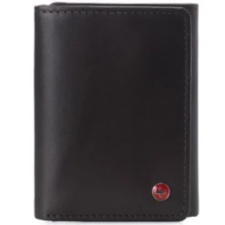 Leon RFID Trifold Wallet By Alpine SwissProduct Features: Genuine Leather LEON TRIFOLD – MSRP $45 – We have designed our Trifold wallet to be as small as possible while fitting the optimal amount of cash, cards, receipts and essentials we tend to carry in our wallets without being overstuffed. The Leon Trifold will easily fit in your front or back pockets. After a few weeks of use, this genuine leather wallet will begin to stretch and conform according to your needs, just like an expensive pair of leather shoes. FUNCTIONAL – Measurements: 3 1/4″ L x 4 1/8″ W x 1″ H when folded and 9” L x 4 1/8” W x ¼” H when open. Full size lined bill section, 1 ID window, 6 horizontal credit card slots and 2 vertical pockets. PRO TIP – Place the card used most often in the front card slot that you fold out first so you can get to it without opening the wallet fully, while the cards used least often should go in the vertical pockets under the card slots. Best suitable to carry in front pocket. YORK COLLECTION – Original classic line accented with our embossed logo. Comes in a black Alpine Swiss gift box. The York Collection features dressy traditional leathers that are ethically sourced and processed using sustainable eco-friendly methods. SMOOTH FINISH LEATHER – The Leon Trifold wallet is skillfully crafted from genuine cowhide leather with a unique semi-glossy finish and a completely smooth to the touch flat texture with no leather graininess. This highly durable leather is very structured and not as flexible and conforming as our other traditional leather finishes. RFID PROTECTED: Certified independent lab tests in Met Labs Santa Clara, CA facility. Secure your personal data for credit card RFID chips operating at 13.56 MHz frequency while allowing use of 125 KHz proximity cards such as ID badges, hotel cards & some transit cards.