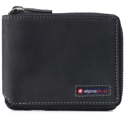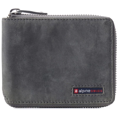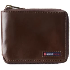 Logan RFID Zipper Bifold Wallet By Alpine SwissProduct Features: Genuine Leather LOGAN ZIPPER BIFOLD – MSRP $45 – RFID protection against electronic theft of your credit cards and identity. Secure all round zipper closure on our Logan bifold protects your cash and other valuables from falling out of it. The Logan Zipper Bifold will easily fit in your back pocket. After a few weeks of use, this genuine leather wallet will begin to stretch and conform according to your needs, just like an expensive pair of leather shoes. FUNCTIONAL – Measurements: 3 1/2″ H x 4 5/8″ L x 3/4″ W. Divided double bill section, 1 ID window, 9 horizontal credit card slots and 4 vertical pockets. PRO TIP – 4 vertical pockets under the card slots add a tremendous amount of carrying capacity. If you need to double up cards, use front or back card slots of the wallet. Use the center flap only for single cards to maintain a slimmer profile. HAMPTON COLLECTION – A modern classic accented with an embroidered inlay logo for a casual yet polished look, comes in a dark navy Alpine Swiss gift box. The Hampton Collection features fashionable smart casual leathers that are ethically sourced and processed using sustainable eco-friendly methods. Also available are our YORK COLLECTION in dressier classic leathers with our rounded cross logo emblem & CAMDEN COLLECTION which feature deluxe size larger wallets with more space & pockets. BUILT TO LAST – Our innovative design is crafted from the finest quality genuine leather to ensure your wallet ages beautifully and stands the test of time. Glossy Nappa cowhide leather is soft, smooth, and durable with a semi glossy finish. Nubuck buffed cowhide leather has a matte finish with a velvety soft feel featuring distressed and aged color finishes. RFID PROTECTED: Certified independent lab tests in Met Labs Santa Clara, CA facility. Secure your personal data for credit card RFID chips operating at 13.56 MHz frequency while allowing use of 125 KHz proximity cards such as ID badges, hotel cards & some transit cards.