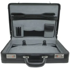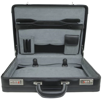 This Classic Leather Attache Case looks very clean and professional. Yet with all the fine details it is still a robustly made sturdy case that will last you for years to come. Combination locks can be set to two different sets of numbers so either side can have its own unique combination.