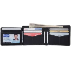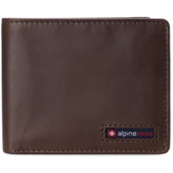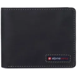 Spencer Flip ID Wallet By Alpine SwissProduct Features: Genuine Leather SPENCER FLIP ID – MSRP $45 – Our most popular design is a modern bifold wallet that lends functionality and style. The Spencer Flip ID Bifold features a familiar layout bringing together best in class for bifold design and hybrid trifold functionality. After a few weeks of use, this genuine leather wallet will begin to stretch and conform according to your needs, just like an expensive pair of leather shoes. Pro Tip – This wallet has a divided bill section to separate large and small bills. FUNCTIONAL – Measurements: 4 3/8″ L x 3 1/2″ W x 3/4″ H. Divided lined bill section, 2 ID windows, 8 horizontal credit card slots and 4 vertical pockets. Pro Tip – 4 vertical pockets under the card slots add a tremendous amount of carrying capacity. If you need lots of room this is the wallet for you! HAMPTON COLLECTION – A modern classic accented with an embroidered inlay logo for a casual yet polished look, comes in a dark navy Alpine Swiss gift box. The Hampton Collection features fashionable smart casual leathers that are ethically sourced and processed using sustainable eco-friendly methods. BUILT TO LAST – Our innovative design is crafted from the finest quality genuine leather to ensure your wallet ages beautifully and stands the test of time. Glossy Nappa cowhide leather is soft, smooth, and durable with a semi glossy finish. Nubuck buffed cowhide leather has a matte finish with a velvety soft feel featuring distressed and aged color finishes.  RFID PROTECTED: Certified independent lab tests in Met Labs Santa Clara, CA facility. Secure your personal data for credit card RFID chips operating at 13.56 MHz frequency while allowing use of 125 KHz proximity cards such as ID badges, hotel cards & some transit cards.