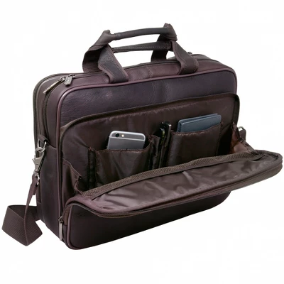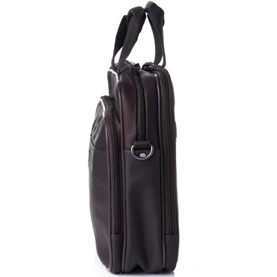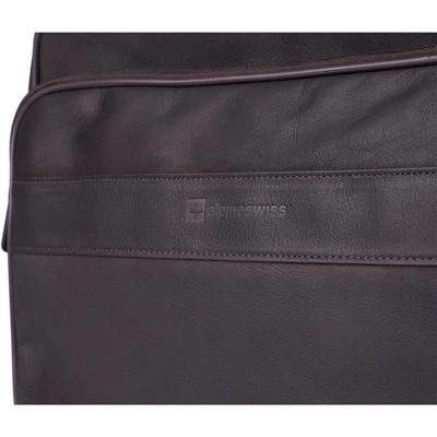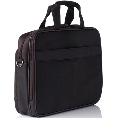 15.6” Laptop Briefcase Portfolio By Alpine Swiss Product Features: Genuine Leather TSA APPROVED CARRY ON SIZE – Measurements 16” x 12” x 5” – TSA approved as a personal item or a carry-on to bring in flight, fits under seats as well. LAPTOP SLEEVE & ORGANIZER – Center Section is fully padded to carry 13” to 15.6” notebook computers. Top-zip messenger style opening for easy access, get into your bag without having to take it off your shoulder. Comfortable padded adjustable, removable shoulder strap. Front organizer area includes 2 mesh elastic pockets allowing you to quickly see and find what you are looking for. pen holders and 2 slip pouches. Back section features a divided file folder for Legal, Letter or A4 sized files. DURABLE MATERIALS & CONSTRUCTION- Dual leather handles are reinforced with ballistic nylon for durability. Shoulder strap buckles are attached to the case using metal rivets to insure these do not rip over time with the weight strain. Superior workmanship, well stitched and put together with attention paid to every detail of the construction process. Elegant polished gun-metal shade hardware. Back trolley piggy back attachment. Well-padded all around to protect your belongings. QUALITY COLOMBIAN LEATHER – Colombian Vacquetta Leather is a durable pebble grain finish leather. This material is made of cowhide and is minimally treated to maintain its natural beauty. Each case can have its own unique characteristic grain and markings as well as color variations. WARRANTY – Comes with manufacturer’s warranty. MSRP $295.00