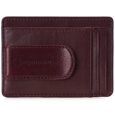 Dermot RFID Spring Money Clip By Alpine SwissProduct Features: Genuine Leather DERMOT SPRING MONEY CLIP – MSRP $45 – Meant for use in your front pocket, our slim design is stylish, sleek, and a convenient modern alternative to a traditional bulky wallet with room for all of your essentials. After about 3-4 weeks of use, this genuine leather wallet will begin to stretch and conform according to your needs, just like an expensive pair of leather shoes. In time you’ll be able to fit double cards in some slots. FUNCTIONAL – Measurements: 4 1/8″ L x 3″ W x 1/2″ H. Total of 8 slots + 1 clip: Leather covered spring clip for cash holds up to 15 folded bills, 4 vertical card slots, 2 horizontal card slots, 1 ID Window, and 1 top full length opening horizontal slot for cash, receipts, or cards. PRO TIP – Use two cards on the outside of your folded cash bills like bookends to easily fit the most in your center cash pocket. YORK COLLECTION – Original classic line accented with our embossed logo. Comes in a black Alpine Swiss gift box. The York Collection features dressy traditional leathers that are ethically sourced and processed using sustainable eco-friendly methods. SOFT NAPPA LEATHER – The Dermot spring money clip wallet is skillfully crafted from quality genuine cowhide nappa leather. The barely-there pebble grain texture is buttery soft to the touch making it both luxurious and pliable to easily conform to fit multiple cards per slot. RFID PROTECTED: Certified independent lab tests in Met Labs Santa Clara, CA facility. Secure your personal data for credit card RFID chips operating at 13.56 MHz frequency while allowing use of 125 KHz proximity cards such as ID badges, hotel cards & some transit cards. MSRP $45.00