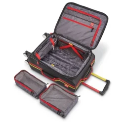 Travel in Mickey style with this American Tourister X Disney softside carry on! This bag will show off your personality while giving you all the bells and whistles you need while traveling! Not only does this luggage have a ain compartment packing with smart clip â„¢ buckles but it comes with removable packing cubes and a laundry bag for the ultimate organizatio.n Airline Approved – the carry on is perfect to bring aboard most major airlines.