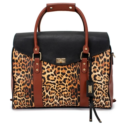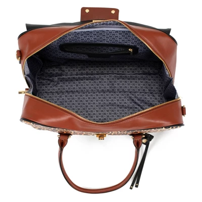 Combine fashion and functionality with this faux leather weekender bag. The Leopard weekender is a cabin-friendly medium-sized bag, a spacious main compartment and zip-top closure. The exterior has one rear zippered pocket with a removable shoulder strap. The interior has a monogram lining with pockets to organize small items.