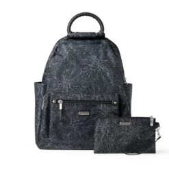 Everyday elegance just got easier. Go hands-free while traveling with the lightweight all-day backpack’s convenient adjustable straps. The removable RFID-blocking wristlet protects your personal information, so you can focus on the journey ahead. REMOVABLE WRISTLET: Need to go lighter? Mini but mighty, the streamlined, removable wristlet is a smart choice for on-the-go organization. ALL-DAY ADJUSTABILITY: Customize your comfort with an adjustable, removable strap designed with busy days in mind. HANDS-FREE FUNCTIONALITY: Never miss a moment! Stay present no matter where your day leads courtesy of this day backpack’s convenient hands-free design and quick-access pockets. LIGHTWEIGHT & WATER-RESISTANT: Made with water-resistant material, this backpack bag is a breeze to spot clean; and at 1.22 pounds, it’s the perfect lightweight choice. 10.5″w x 15.25″h x 4.75″d