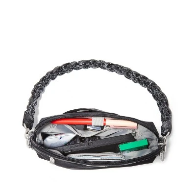 - 20″ detachable braided faux leather shoulder strap
