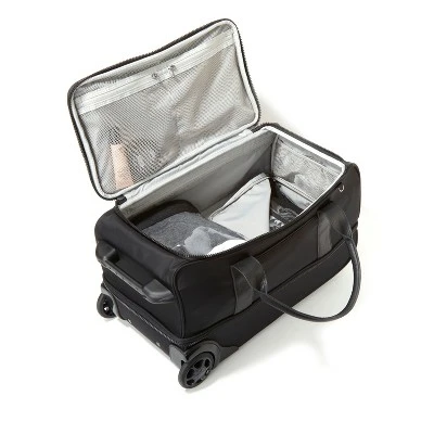 Brimming with pockets —including a separate compartment with a divider for your shoes — this lightweight travel duffel is the perfect stylish and smart carry-on bag. A telescoping two-height handle adds extra versatility to this carry-on duffel, while the large top opening makes packing an absolute breeze.