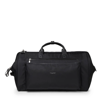 Travel smarter with the Soho Duffel! Featuring a removable, adjustable crossbody strap and a built-in luggage handle sleeve, it’s the perfect pick for catching your connecting flight or killing time in terminals. And once your adventure starts, you’ll love the ample interior organization boasting plenty of space for essentials and souvenirs alike. On-the-go Organization: With plenty of multifunctional pockets and compartments, this travel duffel bag promises easy-access to your essentials. Customizable Comfort: Thanks to a conveniently adjustable 52” crossbody strap, wearing your bag your way has never been easier. Luggage handle sleeve: A convenient sleeve lets you slip your bag right onto your extra luggage for added versatility while traveling. Water-resistant Material: Need a quick refresh? Cleaning is a breeze with this water-resistant bag. Lightweight Design: Weighing 2.6 lbs. and measuring in at 21” W x 12” H x 11” D, the Soho Duffel boasts plenty of on-the-go storage space without being too bulky.