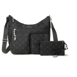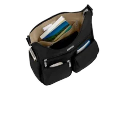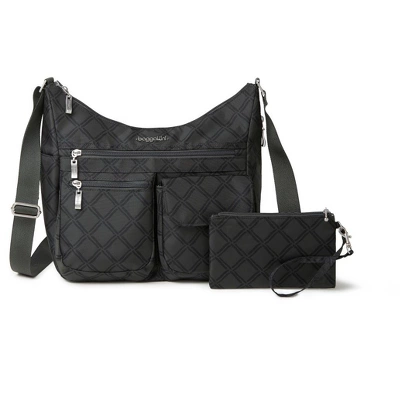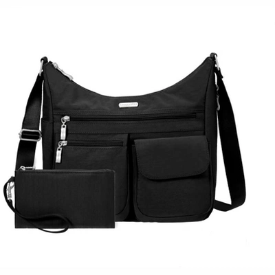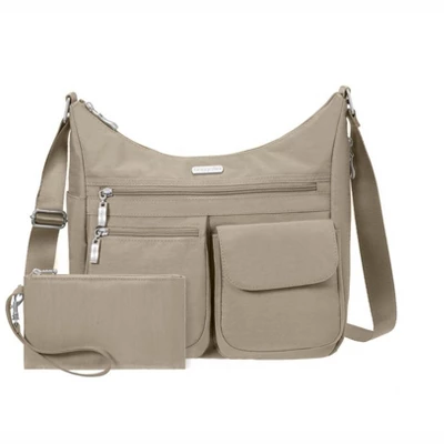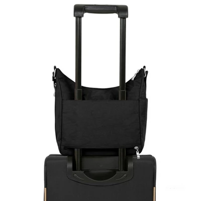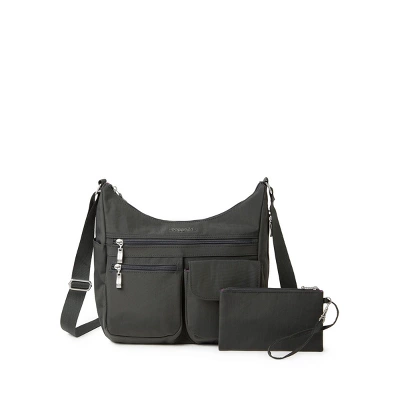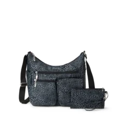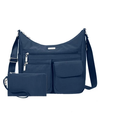 Our most popular everyday bags take center stage in the Legacy collection. Featuring a lightweight design, multifunctional pockets, and built-in RFID protection, the Everywhere Bagg will keep you confident wherever you go. PRACTICAL AND STYLISH: The Baggallini Everywhere crossbody bag brings you a convenient, hands-free design in a stylish, modern shape. The nylon bag comes in a variety of colors and patterns with extra pockets to help you stay organized. RFID BLOCKING: A removable RFID-protected phone wristlet keeps your credit cards and ID from being scanned and stolen. MACHINE WASHABLE: No worry if you get this bag dirty or want it to look brand new. To wash, remove wristlet, place in a washing bag or pillow case, and wash in warm water with mild detergent. Stuff pockets to maintain shape while airdrying. FITS ON A LUGGAGE HANDLE: The Everywhere bag has a sleeve that slips on the handle of your rolling suitcase for hands-free travel. LIGHTWEIGHT AND WATER RESISTANT: Our water-resistant crossbody bag weighs just one pound and measures 9” tall, 11” wide, and 5” deep with a 52” adjustable strap.