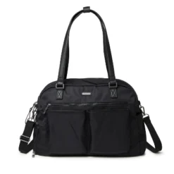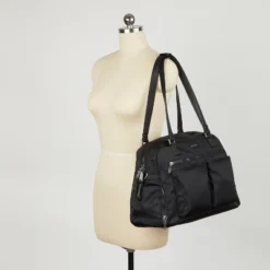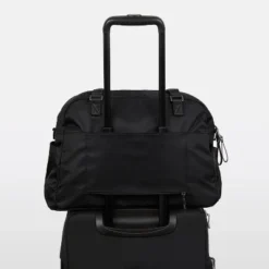 This weekender travel bag is perfect for short work trips or weekends away. A padded laptop sleeve keeps your computer secure, and a grommeted cord opening means you can charge your phone while you text. RFID-protected card slots, a shoe pocket, and a luggage handle sleeve round out the must-have fifth avenue weekender. MULTIFUNCTIONAL ORGANIZATION: From a quick-access phone compartment to zippered pockets and more, securing your go-to items has never been easier. At 17″ w x 12″ h x 6.5″ d, the Fifth Avenue Weekender is perfect for your weekend getaways. RFID PROTECTION: With built-in RFID protection, you can rest assured that your personal information is safe no matter where the day leads. CUSTOMIZABLE COMFORT: A 52’’ removable, adjustable crossbody strap is perfect for wearing your bag your way, and a luggage handle sleeve keeps you steady on the go. ORGANIZATION: Pack away extra shoes in a shoe pocket, work on the go with the padded laptop sleeve, and easily access your charging or headphone cords with a specially designed grommeted opening. LIGHTWEIGHT AND WATER-RESISTANT: A lightweight design makes our Fifth Avenue Weekender perfect for travel, while water-resistant fabric ensures spot-cleaning is a breeze!