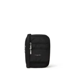 Brilliantly versatile crossbody travel bag with multiple pockets. A smart choice for airport days—stowing your ticket, passport, inflatable neck pillow, cell phone and more. INTERIOR AND EXTERIOR ORGANIZATION: The RFID Journey Crossbody has both interior and exterior zipper closures in the front and back of the bag to keep items safe and protected. LIGHTWEIGHT AND WATER RESISTANT: Made of lightweight, water-resistant nylon, this crossbody is comfortable and ideal for all day travel. STAY ORGANIZED IN STYLE: This adjustable bag can be worn as a crossbody, shoulder bag, or a waist pack. No matter which style you choose, you can stay organized and hands free with interior and multifunctional pockets. PHONE POCKET: The RFID Journey Crossbody bag features a quick access phone pocket that will keep your phone safe and protected. This convenience is essential for all day travel. CREDIT CARD PROTECTION: This stylish and functional bag has five built-in credit card slots in order for your essential items to be protected and ready to go. You will know your items are safe while being able to access them quickly.