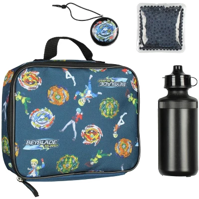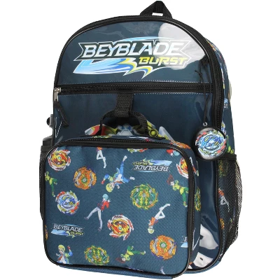 - BACKPACK AND LUNCH BOX DESIGN – The backpack features a large Ace Dragon design on front with an allover design on the sides of 4 popular characters from Burst Rise anime, Fumiya Kindo, Valt Atoy, Delta Zakuro, and Dante Koryu. They are accompanied by their spinner tops, Ace Dragon, Erase Devolos, Bushin Ashindra, and Wizard Fafnir. The lunch box has a similar allover design.