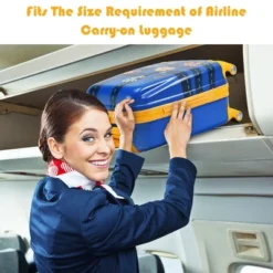 Are you looking for luggage set for kids? Our 2 pieces kids luggage set will be a great choice.This kids luggage set with large capacity and classified storage . It comes with a 12” backpack and a 18” carry-on suitcase. The backpack can be attached to the suitcase with equipped add-on elastic band. With this luggage set, your kid can learn to pack and carry their own suitcase, which will improve their independence and self-care ability. The luggage set offers adequate storage space for clothes, books, toys and other items. Besides, the suitcase has a side pocket with zipper, which is ideal for classified storage. Equipped with 4 rolling wheels and adjustable handle, the lightweight luggage set is convenient for children to move. Made of high quality ABS material and covered with protective film, the surface of our kids luggage set is waterproof and wear resistant.