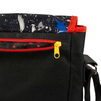 Relive the glory days of the video game arcade with this classic Defender Messenger Bag! This eye-catching bag is made of durable polyester and has a unique screenshot top flap. Game kiosk look including coin slots and vintage cabinet art! 14″ messenger bag features spacious main compartments with interior organization pockets and a zipper for safe storage.