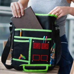 Relive the glory days of the video game arcade with this classic Gauntlet Messenger Bag! This eye-catching bag is made of durable polyester and has a unique screenshot top flap. Game kiosk look including coin slots and vintage cabinet art! 14″ messenger bag features spacious main compartments with interior organization pockets and a zipper for safe storage.