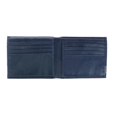 - Interior has 8 card slots, 2 slip pockets, a double full-length bill slot, and a flip-up passcase