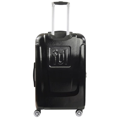 Find your alter-ego as you travel through the skies with this sleek Official DC Comics Batman spinner suitcase. This upscale molded rolling hard-sided checked baggage luggage is large size 29-inch. Perfect for sharing your love of Batman on your next destination vacation.-Officially licensed DC Comics Batman Ful 3D Molded Hardsided luggage.-Made with durable ABS plastic with a polycarbonate film for extra protection against the elements. -Gentle, 360 degree movement on 8 spinner wheels. -Dependable aluminum telescopic pull handle provides hassle-free transportation. -Compression straps help you pack more items and prevent contents from spilling.-Zip wet dry compartment for personal essentials and 2 mesh zip pockets for small accessories.-Sizeable polyester.-Lined main compartment is divided for easy organizing.-Expandable for more space with a 2 inch zipper gusset.-Retractable top and side carry handle for loading into trunks, cars, and overhead bins. -Silver hardware.-Easy to spot clean. -5 year warranty.-30H X 17.5W X 13.5D-Imported.-This product may contain a chemical known by the state of California to cause cancer, birth defects, or other reproductive harm. www.p65warnings.ca.gov