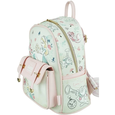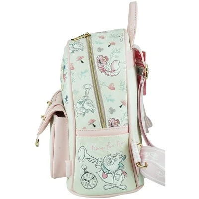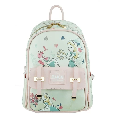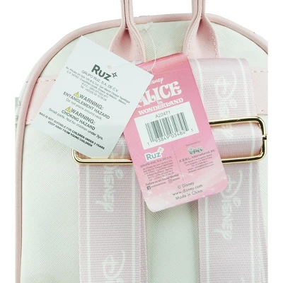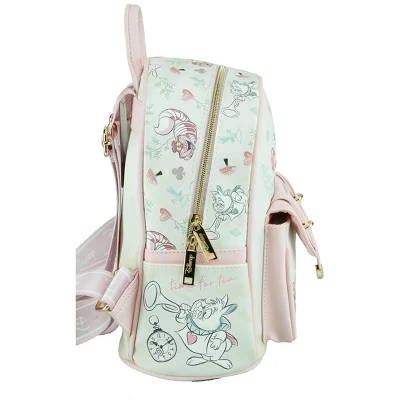 - Mini backpack features Alice in Wonderland with a soft pink trim