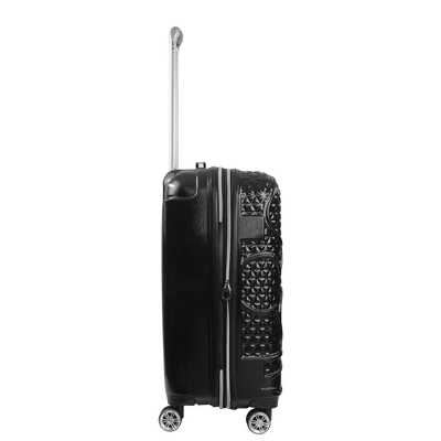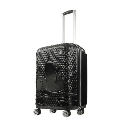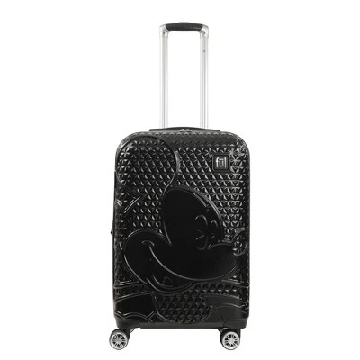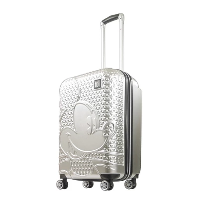 The sleek, upscale design of the Textured Mickey 25in Hard Sided Rolling Luggage makes it a welcome addition to any vacation. It is made with durable ABS Plastic with textured Mickey mouse artwork on the side. The luggage is supported on 8 stable spinner wheels with a convenient aluminum telescopic handle. A vast polyester-lined main storage compartment is divided for easy organization and includes 2 mesh zip pockets with a zip wet dry compartment for personal essentials. Built-in clothing tie straps let you pack more and help prevent spills. The luggage is also expandable for more space with a 2 inch zipper gusset. Finally, it includes retractable top and side carry handles for loading into trunks, cars, and overhead bins. The luggage is easy to spot clean and is backed with a 5 year warranty. -Made with durable ABS Plastic with textured Mickey mouse artwork on the side. -Supported on 8 stable spinner wheels for hassle-free wheeling. -Convenient aluminum telescopic handle is easy to grip. -Vast polyester-lined main storage compartment that is divided for easy organization. -Interior includes 2 mesh zip pockets and a zip wet dry compartment for personal essentials. -Clothing tie straps let you pack more and help prevent spills. -Expandable for more space with a 2 inch zipper gusset. -26″ Retractable top carry handle for loading into trunks, cars, and overhead bins. -Easy to spot clean. -5 year warranty. -26H X 15.5W X 12D-Imported.
