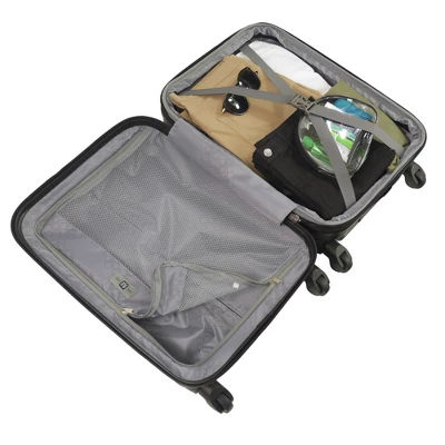 The Pure II collection is designed to fill all your essential travel needs. A durable shell protects your luggage while an inner divider helps to keep it organized. The 360 spinner wheels maneuver in flight spaces and will roll along beside you with minimal effort. A soft-touch handle grip makes loading into a car or onto the conveyor less of a chore.-Made with durable ABS plastic with a polycarbonate film for extra protection against the elements. -Gentle, 360 degree movement on 4 spinner wheels. -Dependable telescopic pull handle provides hassle-free transportation.-Sizeable polyester.-Lined main compartment is divided for easy organizing. -Compression straps help you pack more items and prevent contents from spilling.-Double zippers.-31″ luggage comes with a retractable top and side carry handle for loading into trunks, cars, and overhead bins.-Easy to spot clean. -5 year warranty.-31H X 20W X 12D-Imported.-This product may contain a chemical known by the state of California to cause cancer, birth defects, or other reproductive harm. www.p65warnings.ca.gov