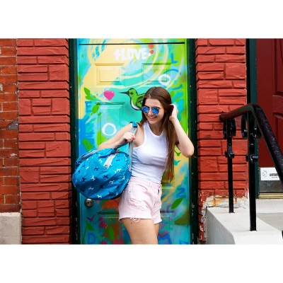 Make room for J World Buena folding duffel. This convertible duffel can be folded into small pouch for space saving ideal. Stash this bag into your luggage and utilize it as a additional duffel bag to carry our additional belonging. Constructed of Honey comb ripstop fabric for light weightless feel . Front pocket for easy access for accessories.