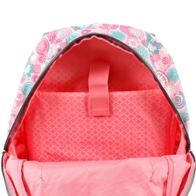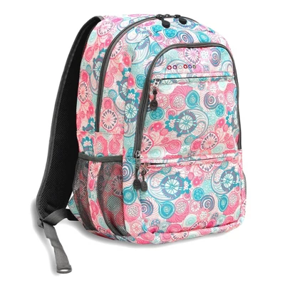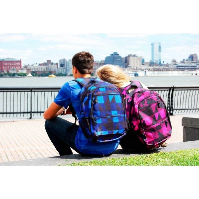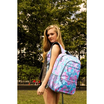 Carry your gear to school inside this colorful printed backpack from J World. The J World Dexter Laptop Backpack is made from polyester fabric and features a classic shape and a durable design with an air mesh cushioned back panel and ergonomic S-shaped shoulder straps that make it comfortable to carry. This backpack includes a roomy main compartment with a padded laptop sleeve, a front organizer compartment to hold school supplies and small accessories, two front utility pockets, and side pockets to hold water bottles. A variety of vibrant colors and prints are available to suit your personal sense of style.