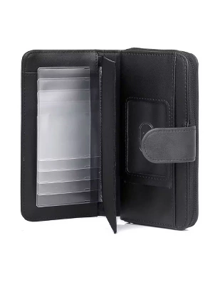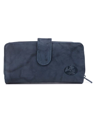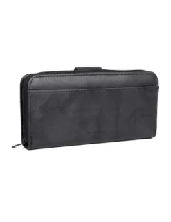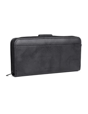 - Authentic Crunch Leather, Rich Floral Emboss Logo Heiress Checkbook Wallet features a full zip-around double compartment with inside zipper pocket and 2 credit card slots, checkbook cover, I.D. window, bill compartment, 2 storage pockets and 5 additional credit card slots.
