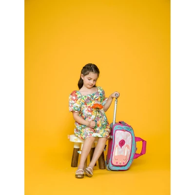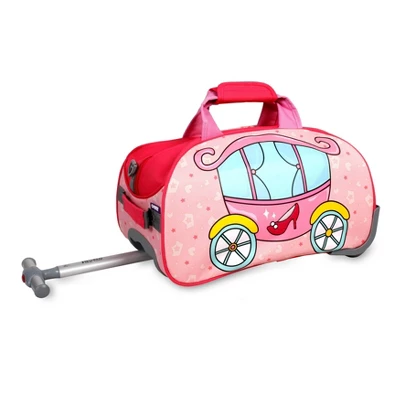 Perfect for kids when traveling, the J World New York Kids’ rolling duffel bag features a spacious main compartment, a telescoping single handle, a padded top and side grip handle, front and back zippered pockets, a detachable shoulder with shoulder pad, and an interior zippered pocket. Designed to fit under airplane seats or in overhead compartment, it measures 17 inches by 10 inches by 10 inches.