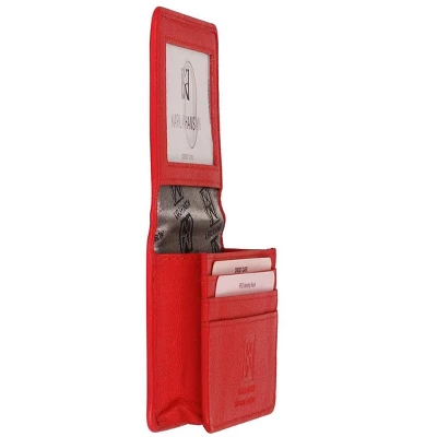 Crafted in soft pebble leather, this sharp-looking and durable card case also functions as a minimalist wallet. Built-in RFID defender technology protects your ID and credit cards.