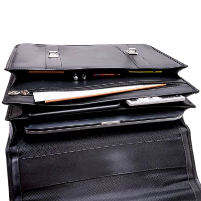 Take your office with you with this double compartment case from McKlein. The padded pocket keeps your laptop safe, and the second pocket is ideal for storing paperwork. The adjustable strap makes carrying this piece comfortable.