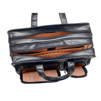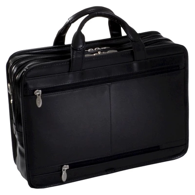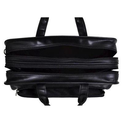 Show up to the office in style with this Leather Double Compartment Laptop Case in Black. A handsome bag with a classic look, this leather case features several accessory pockets for all your organizational needs. A zip closure provides increased protection from dust and dirt, and an adjustable, removable 18″ carrying strap can be fitted to your taste. Compatible with laptops up to 17″. Measures 12.5″Hx16.5″Wx6.5″D.