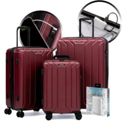 - BUILT FOR CONVENIENCE: This hardshell lite weight 3pc spinner luggage set provides 2″ expansion for even more storage space along with a built-in recessed TSA approved combination lock system for more security on all sizes. The hardcase carry on size luggage case features an exterior double USB port that meets FAA regulations and connects to your portable powerbank charger (not included) for convenient on the go phone charging.