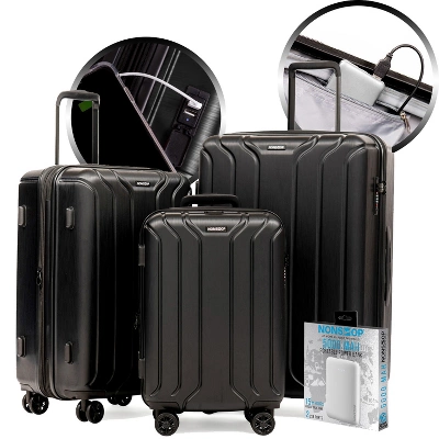 Make Traveling Comfortable, Enjoyable & Convenient With NONSTOP To NEW YORK Expandable Luggage Set! No one likes pulling around big bulky bags that keep stumbling over. This is why we designed our sleek yet spacious luggage set with wheels to take the hassle out of packing, carrying and maneuvering luggage for good. We combine a scratch-resistant ABS hardshell with a sleek and modern design that’s both durable and functional. The spacious interior features a fully zippered closure compartment with a mesh pocket on one side and roomy interior with elastic tie-down straps on the other to keep your clothes in place. Spacious & Thoughtfully Designed For Efficient Travelers Its designed with top and side handles that allow you to easily carry and maneuver it. Thanks to the durable aluminum trolley handle and 8 wheel system, you can you seamlessly roll it on almost any kind of surface. This lightweight and durable luggage set is the perfect choice for travelers and professionals that want both functionality and convenience. The carry on suit case meets most U.S. based airline carry-on size requirements and easily fits in the overhead bin compartment. More Features You’ll Love: – The double USB ports on the carryon bag allow you to easily charge your devices – Multi directional wheels allow you to effortlessly move in any direction – Designed with an interior pocket to hold your personal charging devices – Each travel suitcase offers an addition 2-inch of expandable storage – The handles collapse down in one smooth move for compact storage Size and weight of suitcases with wheels: 20in Carry-On Suitcase: 22.2×13.8×9.65, 7lbs 24in Check In Medium Suitcase: 25.8×16.9×10.8, 7.7lbs 28in Check In Large Suitcase: 29.7×19.3×12, 10.1lbs. Start Traveling and board your nonstop flight The Easy Way With NONSTOP 360 Spinner Wheel Suitcase Luggage Set!