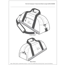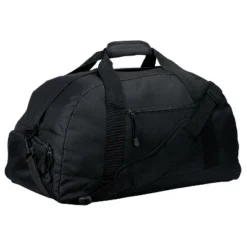 A versatile classic duffel in solid colors. 600 denier polyester canvas. Large center opening for easy packing. Interior zippered pocket. Front zippered pocket for easy decoration Zippered end pocket for shoes towels or gear. Built-in bottom board for shape retention and strength. Detachable adjustable padded shoulder strap Dimensions: 13 h x 23.5 w x 11.5 d; Approx. 3 513 cubic inches Note: Bags not intended for use by children 12 and under. Includes a California Prop 65 and social responsibility hangtag.