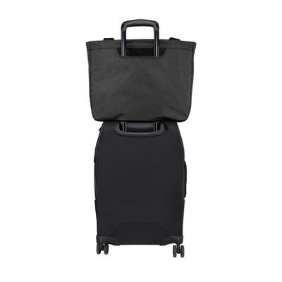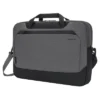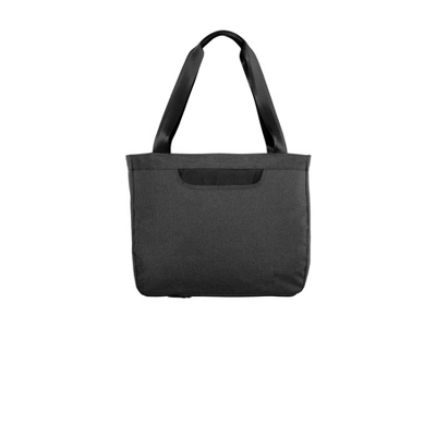 1 680 ballistic poly (solid); 300D two-tone poly/1 680D poly PU (heather) Spacious zippered main compartment with organization panel Interior padded laptop sleeve Zippered front pocket Over-the-shoulder length seatbelt webbing handles Back zippered panel doubles as pocket or luggage trolley pass through Laptop sleeve dimensions: 10.25 h x 18 w; fits most 15 laptops Dimensions: 14 h x 18 w (top) x 15 w (bottom) x 5.5 d; Approx. 1 386 cubic inchesNote: Bags not intended for use by children 12 and under.