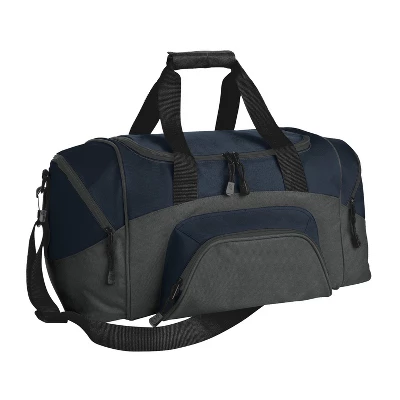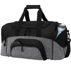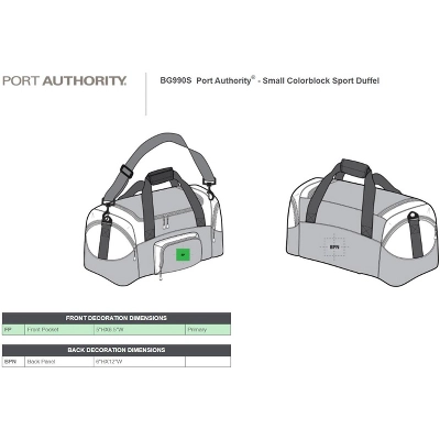 A smaller version of our best-selling budget-friendly duffelthe BG99. 600 denier polyester canvas with 210 denier polyester lining D-shaped zippered opening for easy access in main compartment Padded handle Detachable adjustable shoulder strap Front zippered pocket Two large zippered end pockets Dimensions: 10 h x 20 w x 10.25 d; Approx. 2 050 cubic inchesNote: Bags not intended for use by children 12 and under. Includes a California Prop 65 and social responsibility hangtag.