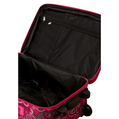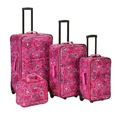 This beautiful deluxe 4-Piece expandable Luggage Set is manufactured with a patented heavy-duty EVA-molded hi-count fabric. This set is perfect for the serious & experienced traveler!! Manufactured with the very best heavy-duty polyester and PVC backing, this luggage set is designed for the traveler on the go and comes with three expandable uprights and a flight tote bag. It comes packed with features including: an inside retractable handle, EZ-Roll in-line skate wheels, back zippered secured pockets, top and side comfort grip handle, stability bars at the bottom to avoid tilting, and locks & keys. Dimensions: 19” Carry-on Upright: 19”H x 13”W x 8”D, expandable to 10”D, 6 lbs; 24” Upright: 24”H x 16”W x 10” expandable to 12”D, 8 lbs; 28” Upright: 28”H x 18”W x 12”D, expandable to 14”D, 9 lbs; Carry-On Flight Tote Bag: 12”W x 11”H x 5.5”D, 1 lb.