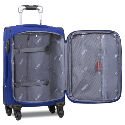 - Three front zipper pockets, 3-digit combination lock, rear ID tag, fully lined interior with single mesh zipper pocket and compression straps