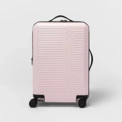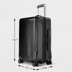 - Hardside suitcase measures 21.5in x 14in x 9.75in (including wheels)