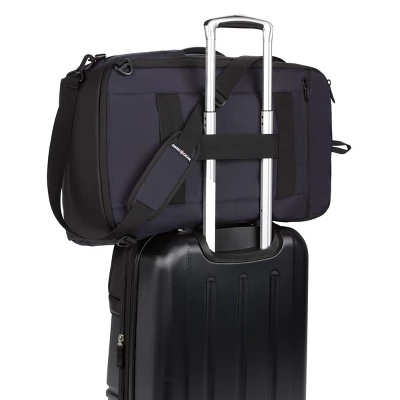 Equipped with fully padded, tuck-away ergonomically contoured shoulder straps with a built-in sternum strap, this pack also features a padded top and side handle, multiple internal and external storage pockets, a fully padded laptop compartment, a removable laundry/shoe bag, a stand-alone electronics accessories carrier, a packing cube, side storage and water bottle pockets, an integrated add-a-bag trolley strap system, side compression straps to help keep everything in its place, as well as front and rear reflective accents for added safety.