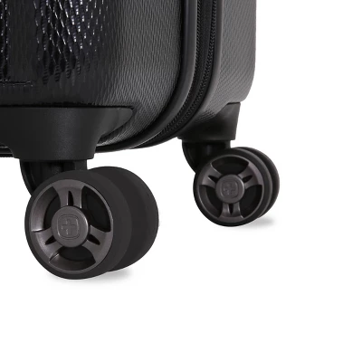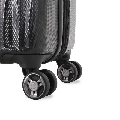 The SWISSGEAR 7272 Energie collections combines a rugged PolyCarbonate hard-shell and architectural design, while its eight multi-directional spinner wheels provide 360-degree maneuverability. Adding to its symmetric aesthetic, its main compartment opens into a split case that features a tie-down clothing compartment with a zippered accessory pocket, while the other side houses a large zippered compartment with additional mesh and cinched pockets. Finished with a retractable locking handle, 2” expandable packing space, and an integrated TSA-approved lock for extra security, pack right utilizing the luxury fixtures ingrained within this sleek, modern case.