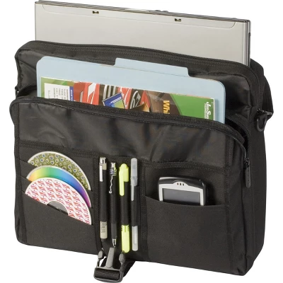 The Targus Messenger Laptop Case fits most laptops with up to 15.6” screens. Don’t be fooled by its lightweight design. A protective padded laptop compartment offers extra protection and the front load workstation includes organization essentials such as media storage, pen loops and laptop accessory compartments. Two separate zippered file sections are large enough to accommodate files and magazines. Mobility is made easy with the easy-grip top handle and adjustable padded shoulder strap. This Messenger laptop Case offers great flexibility – a simple design that’s functional.