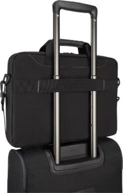 With convenient topload access, a padded laptop compartment and streamlined storage, the Targus Business Casual Slipcase offers everyday protection for laptops up to 15.6”. Slimmer than a briefcase and roomier than a sleeve, the case includes a removable shoulder strap, soft-grip handles and a trolley strap for slipping onto your roller bag for travel. Inside, a padded compartment secures your laptop and keeps documents or magazines handy. Take along a charger, smartphone, and other accessories in the zippered front pocket. A durable mix of fabrics and contrast stitching distinguish this lightweight, thin-profile case.