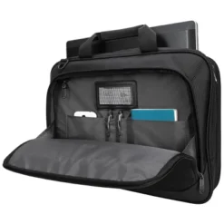 Whether you’re traveling or working, the 15” Newport North-South Tote carries it all in style. Keep your laptop and accessories protected in the zippered main compartment. And carry it comfortably over your shoulder, on your arm, or in your hand. For those that frequently travel for work or simply need a handy bag for a leisure getaway, it can easily be attached to rolling luggage with a luggage strap for a weightless carry.Made from a thoughtful combination of high-density water-repellent twill nylon and leatherette accents, the tote boasts a luxurious sheen in addition to resilience against the wear and tear of being your everyday bag.