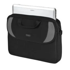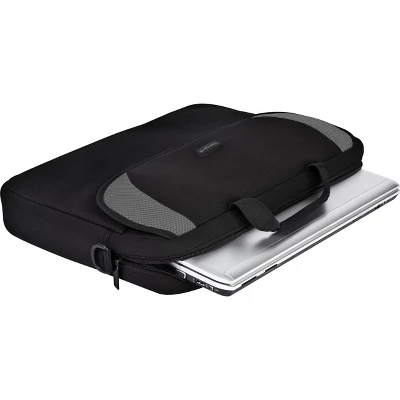 The Targus 16″ Laptop Sleeve can be used as a stand-alone case or to compliment your existing laptop carrying case. It features a neoprene exterior, which provides protection for your laptop and soft comfortable carrying handles. This slip case accommodates laptops with screens up to 15.4″ and even with its compact form factor has ample space in the front and interior storage section for business cards, pens and files.