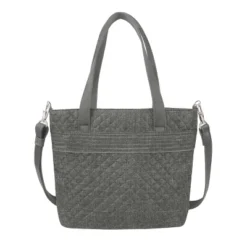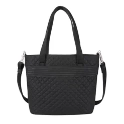 The Travelon Boho Tote is designed for business travel, weekend getaways or everyday excursions. The locking main compartment is roomy and opens wide for full access and features a padded laptop pocket that holds a laptop to 15.6″. It also has two open drop pockets that are great for quick grab items plus a RFID blocking zippered wall pocket that prevents electronic readers from capturing your personal information. The tethered key clip with LED light allows you to quickly and easily locate your items. The outside drop pocket is perfect for a smartphone or other frequently needed items. It features slash-resistant carry handles and comes with an additional adjustable, removable shoulder strap. The add-a-bag strap allows the tote to slide over handle of wheeled luggage making travel hassle-free. Beautifully designed in soft, quilted cotton an accented in nickel plated hardware. Get away in style and stay organized and protected with the Travelon Boho Tote.
