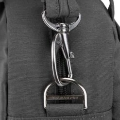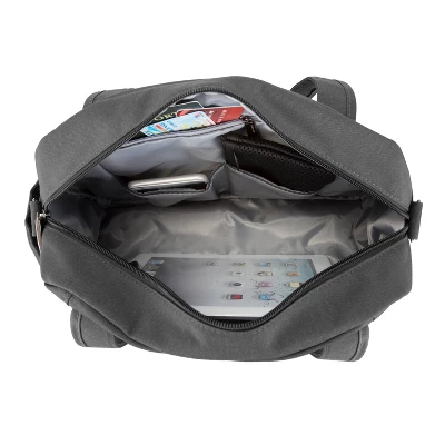 - Made of water and stain resistant Polyester material and accented in raw gun-metal hardwar