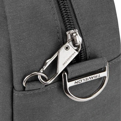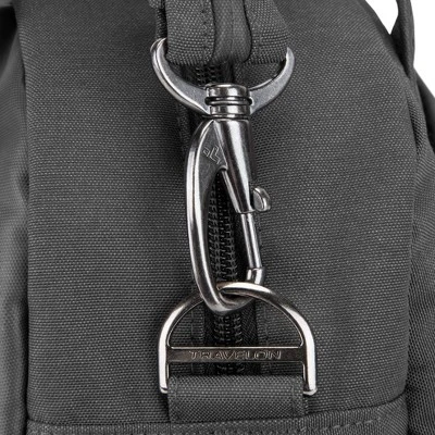 - Full Anti-Theft features include surround slash-resistant body panels and shoulder strap; locking compartments; lockdown strap; and RFID blocking card and passport slots and pockets